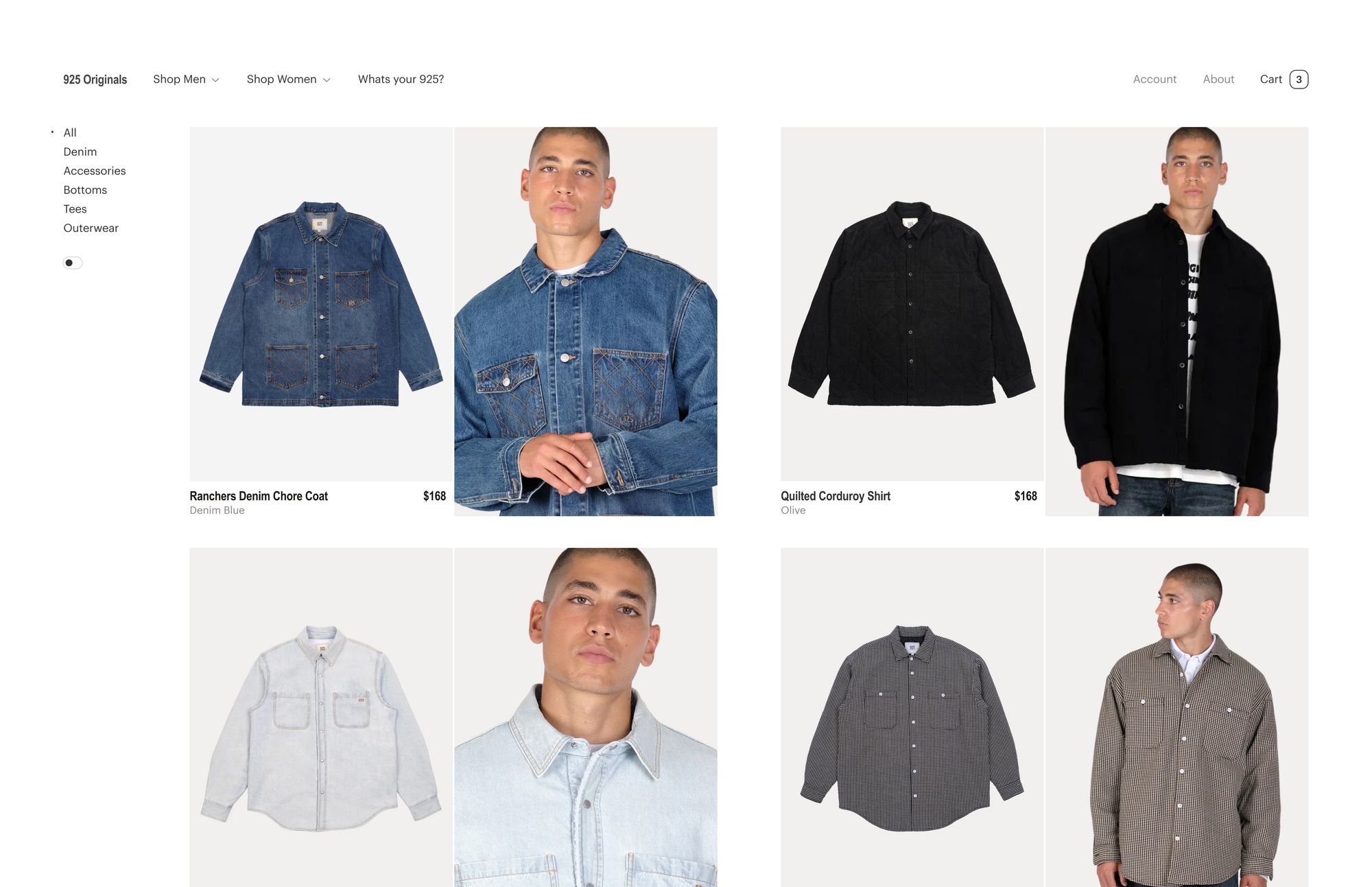 We designed, creatively directed, and built a site that reflects this philosophy. The digital experience strips away excess and puts the product front and center, mirroring 925’s no-frills approach while subtly highlighting the depth of craftsmanship behind each piece. Clean layouts, restrained typography, and an emphasis on material and detail reinforce the brand’s commitment to thoughtful design, rigorous production, and accessibility—positioning 925 Originals as everyday clothing done right.