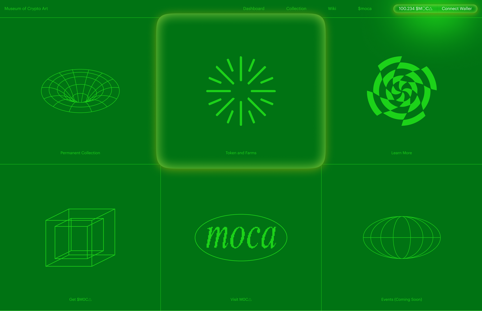 We designed and built the brand and website from the ground up, creating a digital identity that reflects the experimental, decentralized nature of crypto art while maintaining the credibility of a cultural institution. The experience balances futurism with clarity, establishing MoCA as both a museum and a platform—one that honors digital-first creators and defines how art institutions can exist beyond physical space.